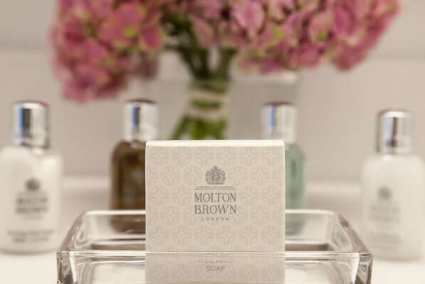 The living space exudes sophistication with a blushed and gold monochromatic design, complemented by state-of-the-art 4K UHD televisions, ensuring cinematic entertainment. Enjoy seamless connectivity with fast WIFI throughout the unit and building, perfect for streaming your favorite movie or working at the provided built-in desk. Unwind on your private balcony with plush seating and city views, or retreat to the bedroom where comfort meets beauty, complete with a state-of-the-art 4K UHD display.
