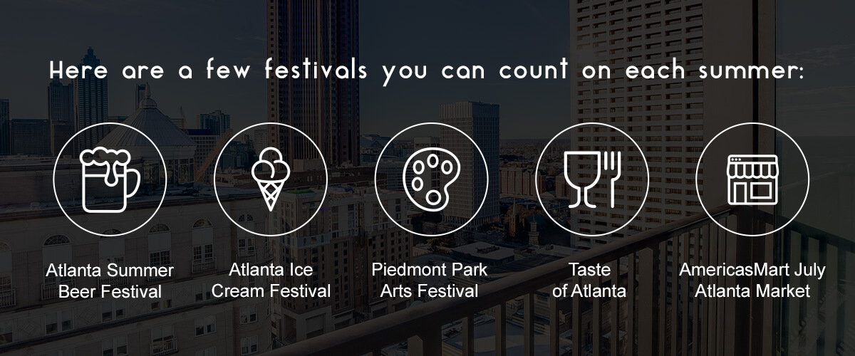 Atlanta locals do not let the heat stop them from enjoying the season! Here are a few festivals you can count on each summer: