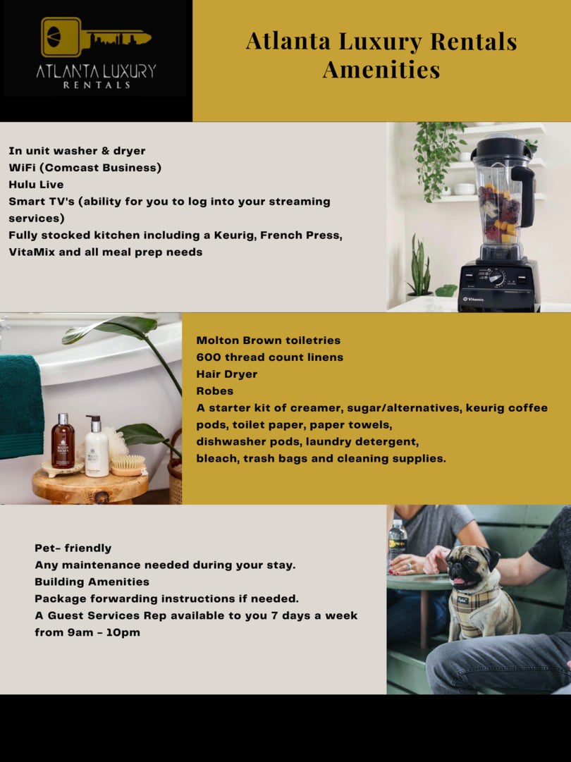Experience: We follow best-in-class guidelines to ensure you have a peaceful, safe and memorable stay with Atlanta Luxury Rentals. To enhance your visit, each property comes installed with smart-home technology. Our properties have keyless entry, a noise detector, and a smoke detection device.  This allows us to respond to noise nuisances and smoke detection without disrupting your stay.  All devices are 100% privacy compliant.  The noise detector only measures noise levels and does not record any conversations, while the smoke detectors only detect marijuana and cigarette smoke. Tampering with either device is strictly prohibited and will result in a $500 fine.  Initial violation will receive a courtesy warning, and the second violation will result in fines of up to $1,000 and guests will be subject to immediate eviction without any refunds.  If you have any questions please let us know as we are committed to providing our guests and fellow neighbors a pleasant experience.