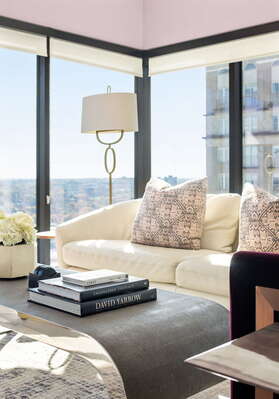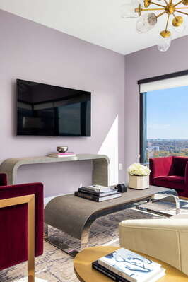 When you’re ready to rest, enjoy a great night’s sleep on a large and plush mattress backed with a velvet headboard and topped with fine linens that promise to bring the comfort. The combination of gold-rimmed lamps and colorful throw pillows makes the bedroom a welcoming space where it’s easy to restore your mind, body and spirit before the next day’s adventures.